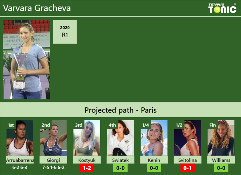 Updated R3 Prediction H2h Of Varvara Gracheva S Draw Vs Kostyuk Swiatek Kenin Svitolina Williams To Win French Open Tennis Tonic News Predictions H2h Live Scores Stats