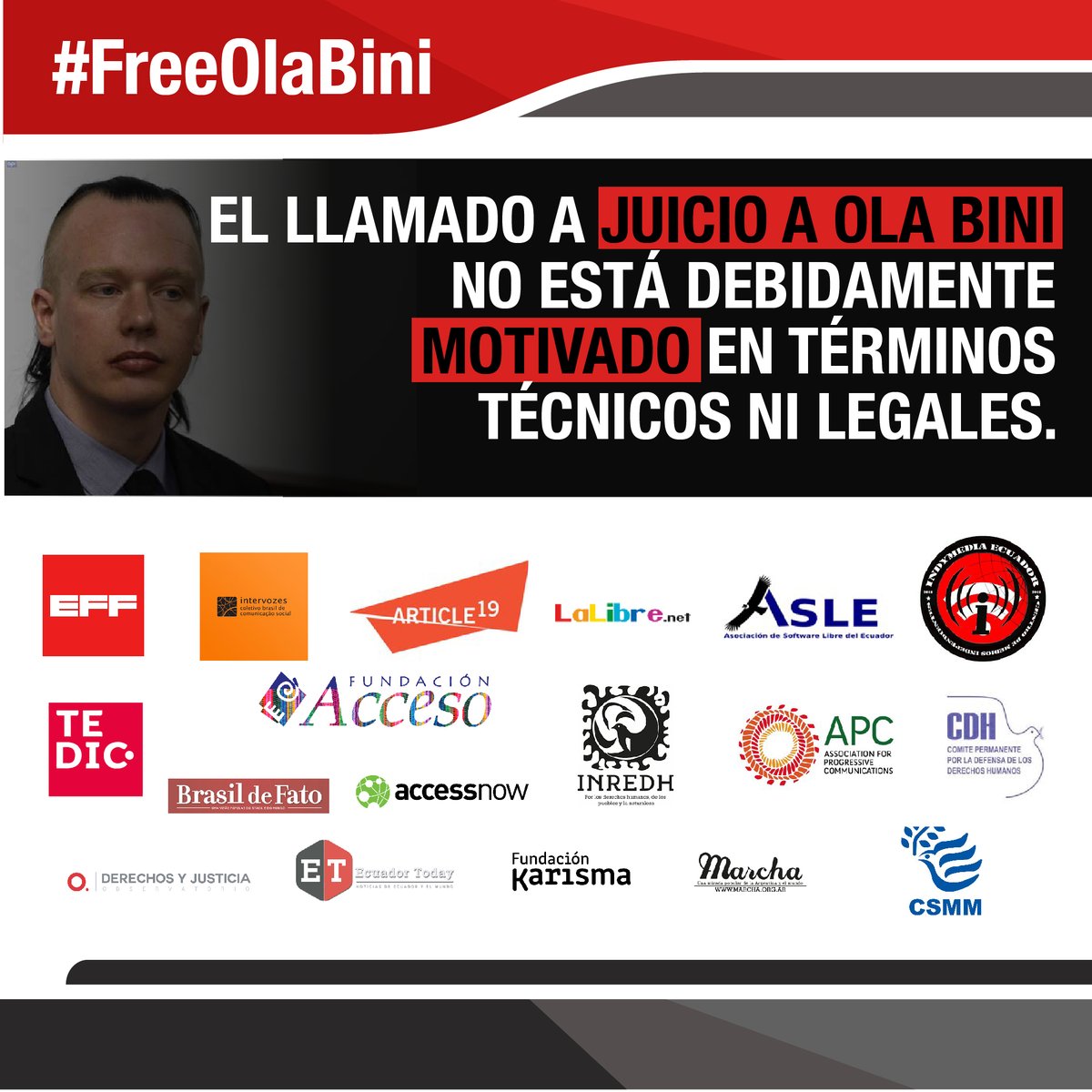 Article 19 On Twitter Ecuador Must Immediately Drop Charges And Release Olabini Digital Security Tools Created By Bini Others Are Vital To Internet Freedoms He Must Not Be Criminalised Https T Co Nonvlww7um